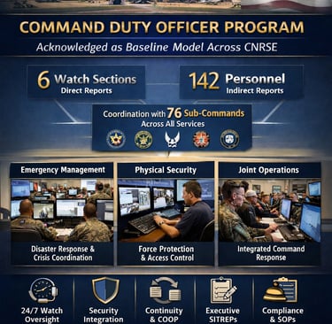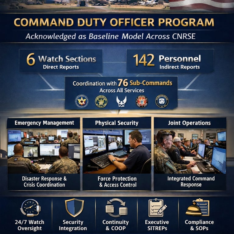 Designed and institutionalized the Command Duty Officer program, serving as overall program lead with: