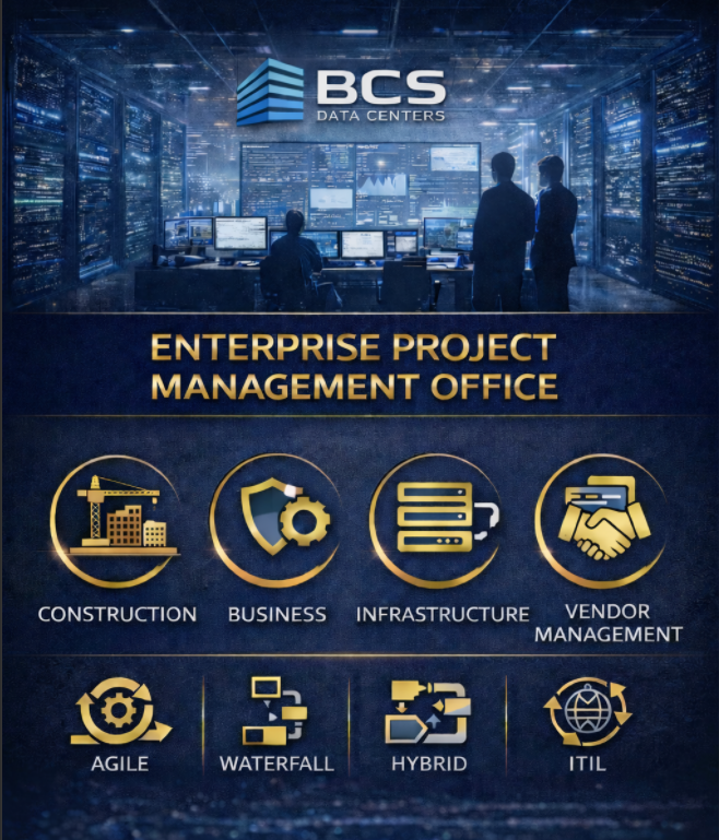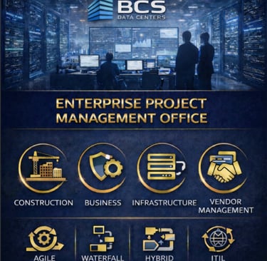 Built and institutionalized a startup PMO at BCS Data Centers from the ground up, integrating Agile, Waterfall, Hybrid, and ITIL delivery frameworks aligned to OT data center operations.