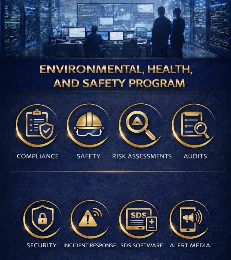 Built and institutionalized the Enterprise Environmental, Health, and Safety (EHS) Program at BCS Data Centers from the ground up, spanning 7 data centers across the United States, aligning regulatory compliance, operational risk management, and emergency response governance.